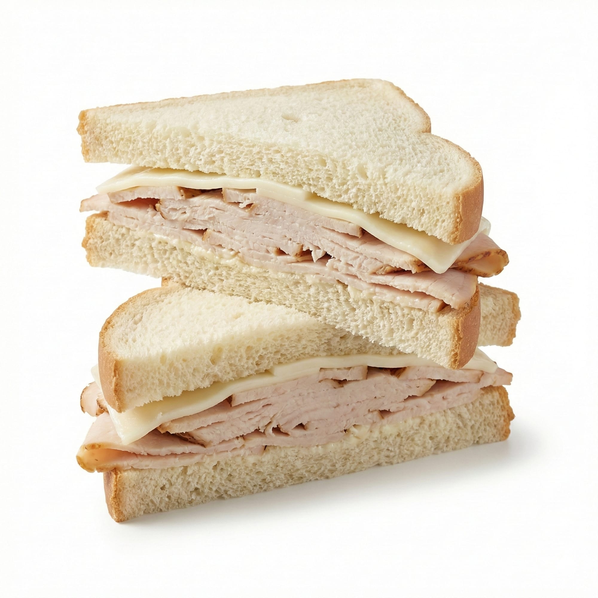 Enjoy our turkey and cheese sandwich crafted with fresh turkey slices and melted cheese on classic sliced bread. Ideal for lunch or a satisfying snack, this sandwich combines quality ingredients for a flavorful experience.