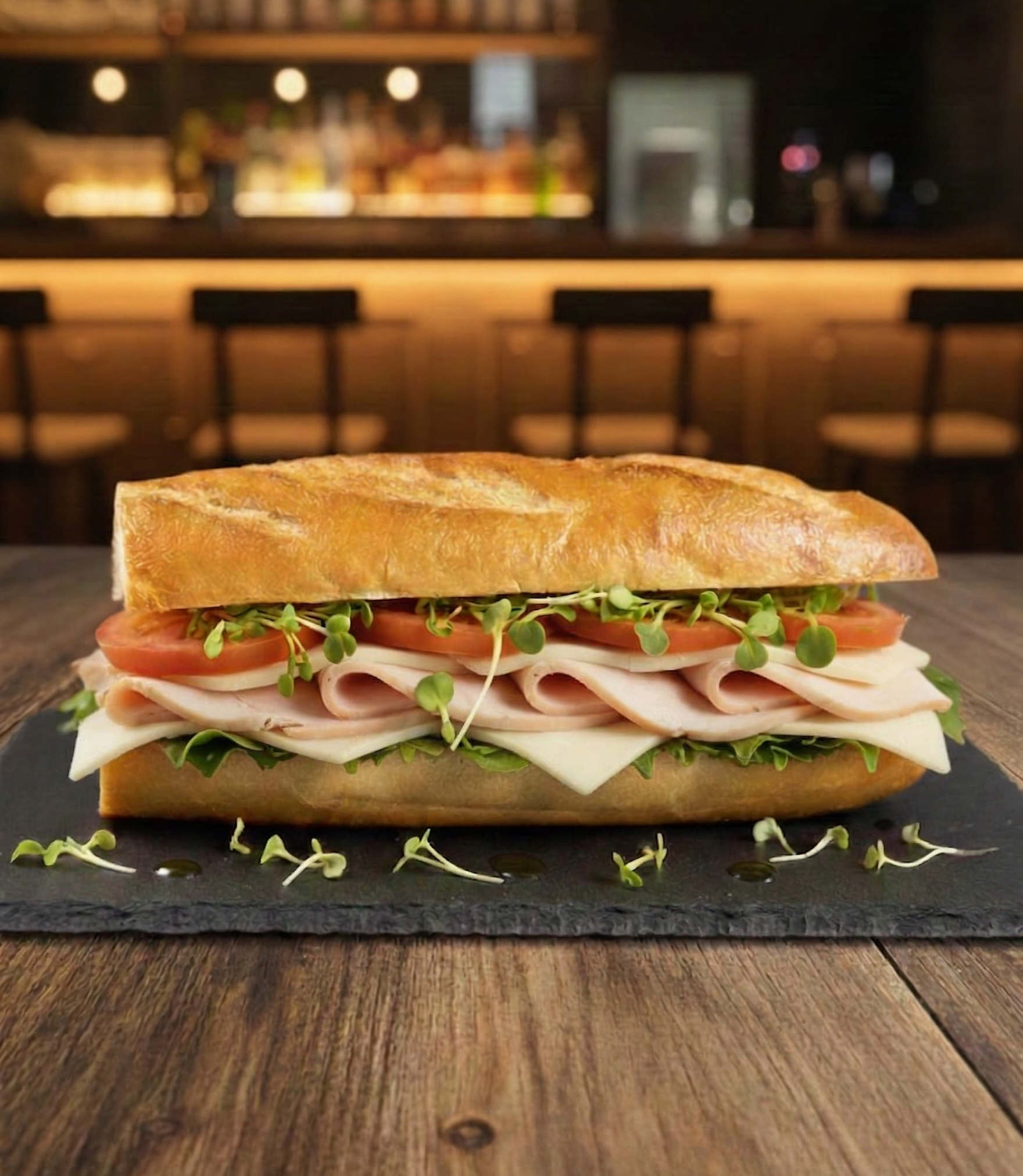 Enjoy a fresh Turkey Cheese Baguette crafted with premium turkey slices, melted cheese, and a crispy baguette. Ideal for lunch or a satisfying snack, this sandwich combines quality ingredients for a delicious taste experience.