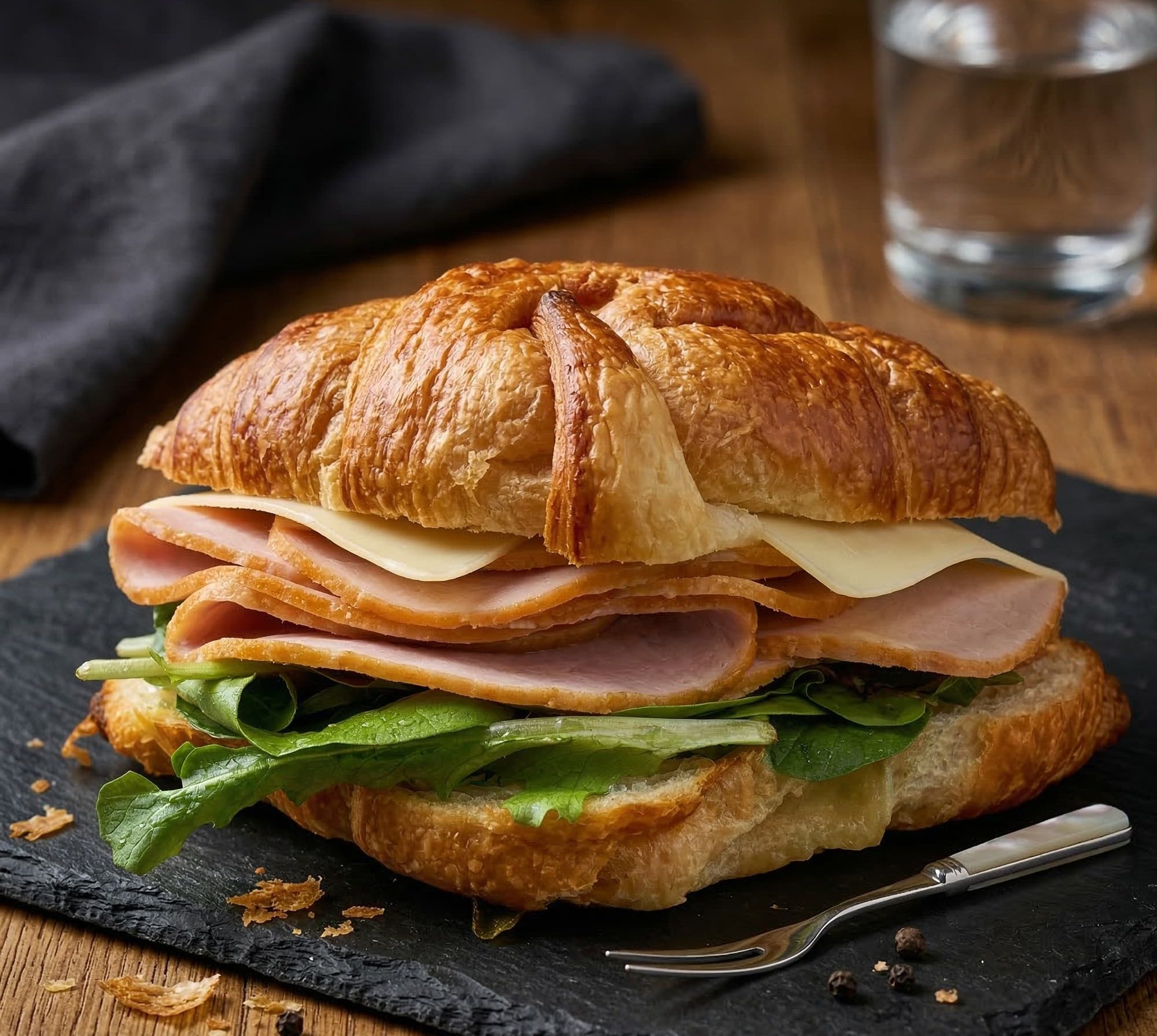 Discover our Turkey Cheese Croissant, crafted with flaky, buttery croissant bread filled with premium sliced turkey and melted cheese. Perfect for breakfast, lunch, or a quick snack, this sandwich offers a delicious combination of flavors and textures. Ideal for those seeking a satisfying and convenient meal option.